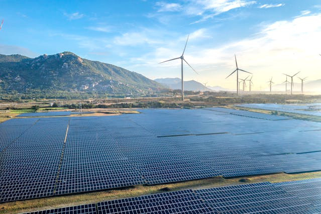 A hybrid solar and natural gas power plant combines renewable solar energy with natural gas turbines and battery storage systems to provide stable, 24-hour electricity while reducing carbon emissions and fuel costs.